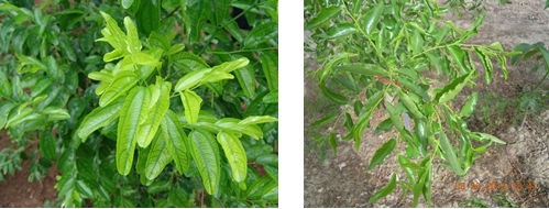 2013年4月下旬,在陜西大荔楊家棟冬棗園,針對(duì)缺素冬棗樹(shù),噴施國(guó)光絡(luò)微2次,間隔15天噴施一次,2013年5月20日,觀(guān)察缺素棗樹(shù),葉片轉(zhuǎn)綠,棗吊生長(zhǎng)正常,花蕾分化好。